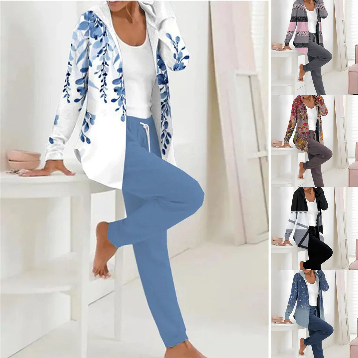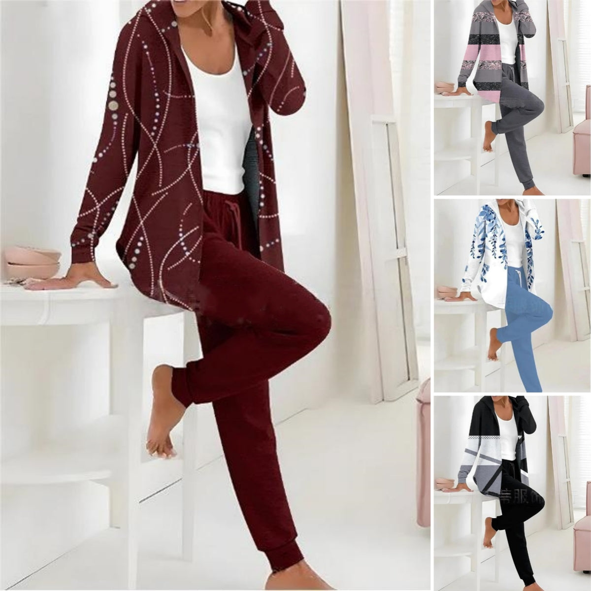 🏆Dámský bestsellerový set🔥【Bunda s dlouhým rukávem + Dlouhé kalhoty】Podzimní zimní dámský dvoudílný potištěný oblek