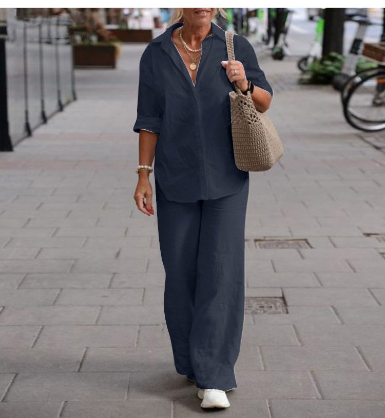 🔥🎉【Topy + Spodnie】【S-5XL】2025 Wiosna Nowy Modny Luźny Jednolity Kolor Damski Zestaw Koszulowy
