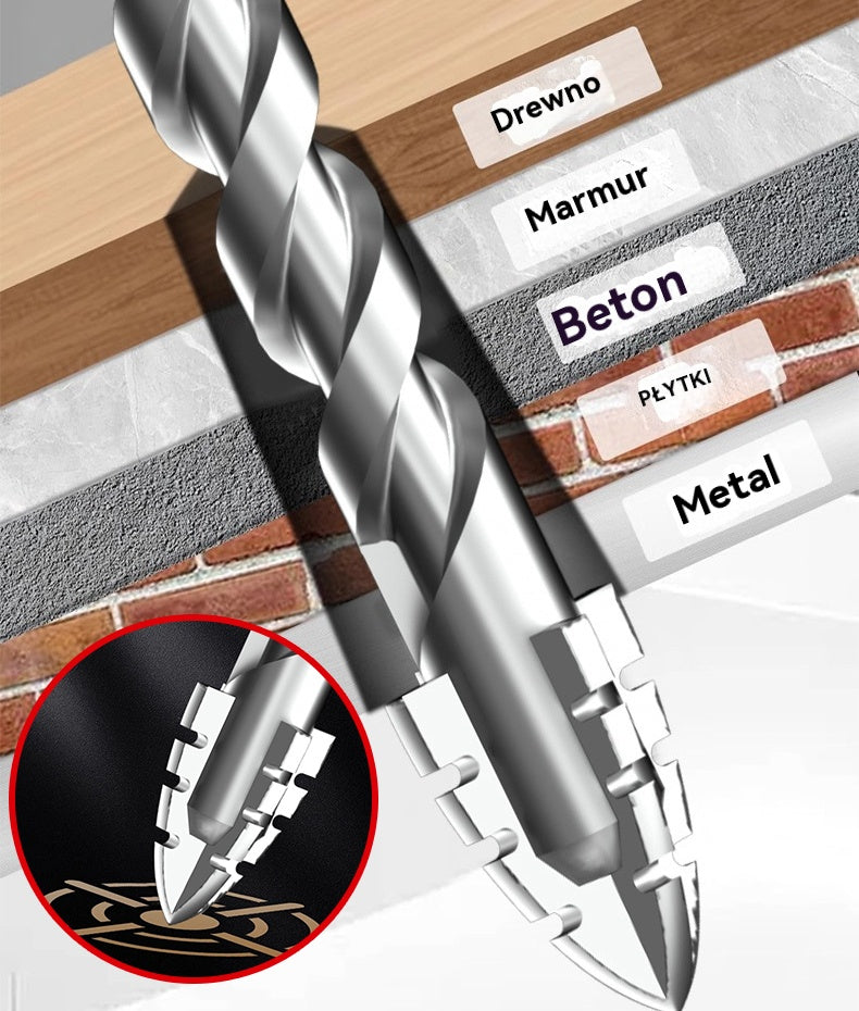 🥇【3+4+5+6+8+10+12】Wiertło mimośrodowe 7. generacji z supertwardej stali wolframowej z ząbkowaną krawędzią