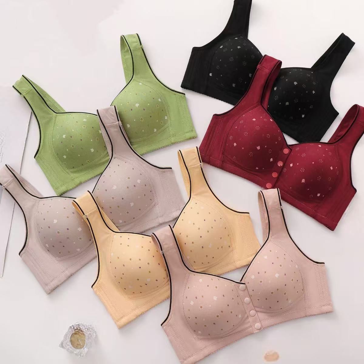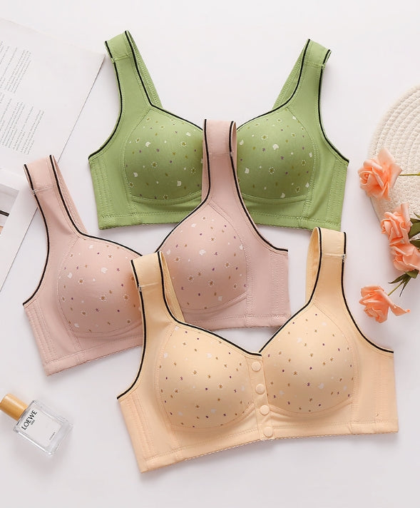 【3-częściowy zestaw】Biustonosz damski bez fiszbin z przednimi guzikami 【40-120 kg】Wygodna antybakteryjna naturalna bawełna