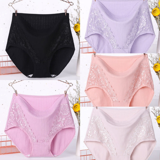 🔥【6 paketov】👙Antibakterijsko spodnje perilo iz bombažne čipke z visokim pasom